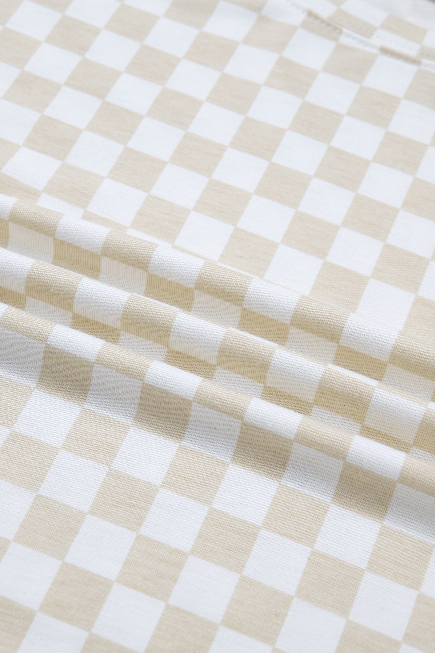 - Checkered print lounge set gives a relaxed, trendy everyday look.
